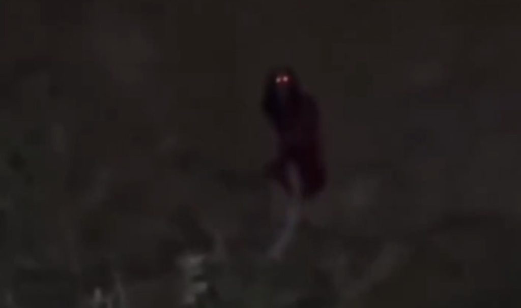 Заснет след мрака, клипът, за който се твърди, че е записан в планинска част на северния индийски щат Химачал Прадеш, показва нещо, което изглежда като фигура с качулка и наметало в сумрака.
